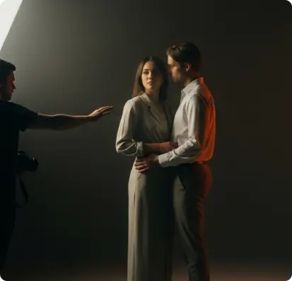 Ensaio individual, casal e time. Direção de pose, styling básico e entrega rápida.